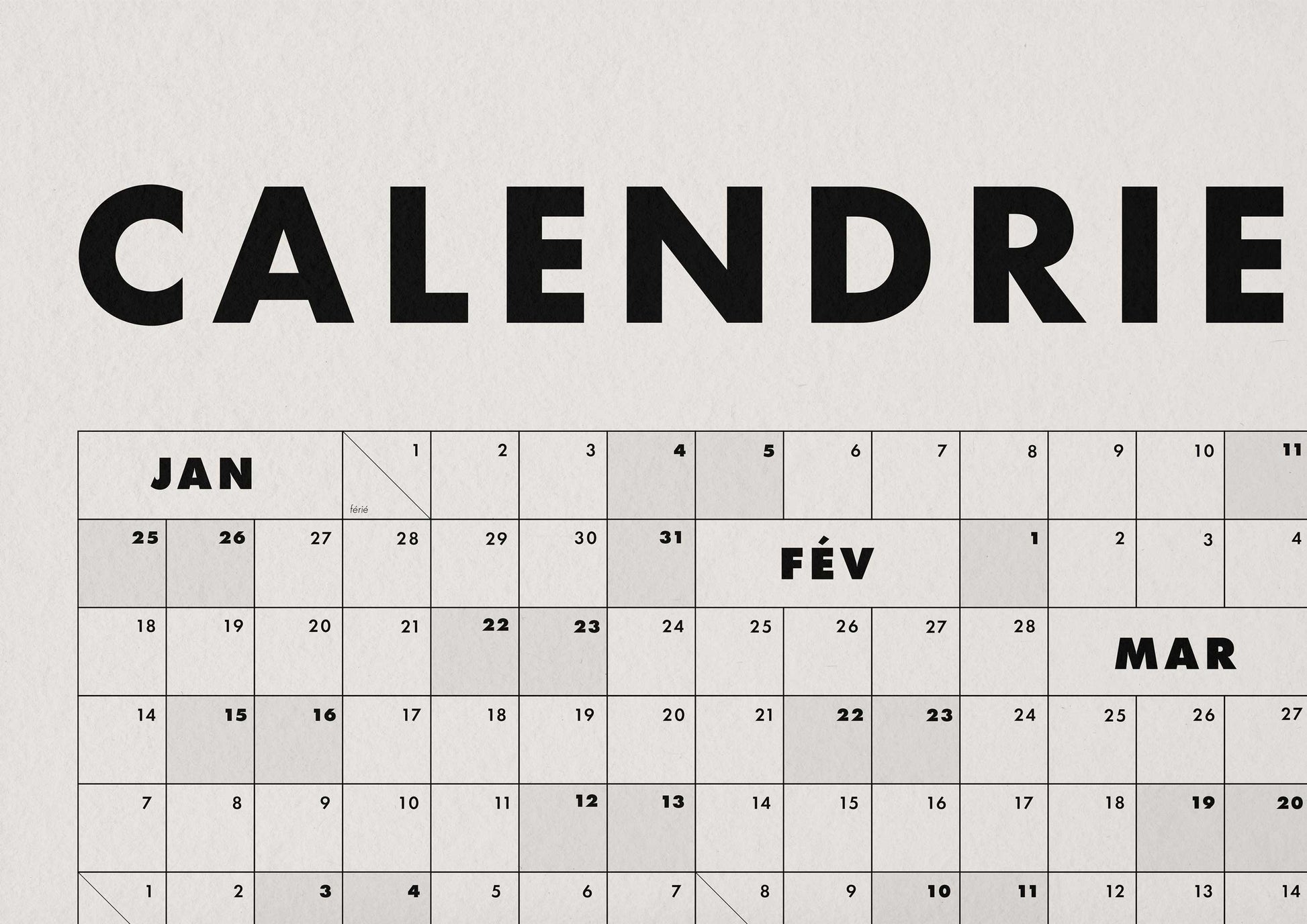 Un calendrier mural minimaliste, tout simple, qui permet de visualiser l’année complète un 1 clin d’oeil.