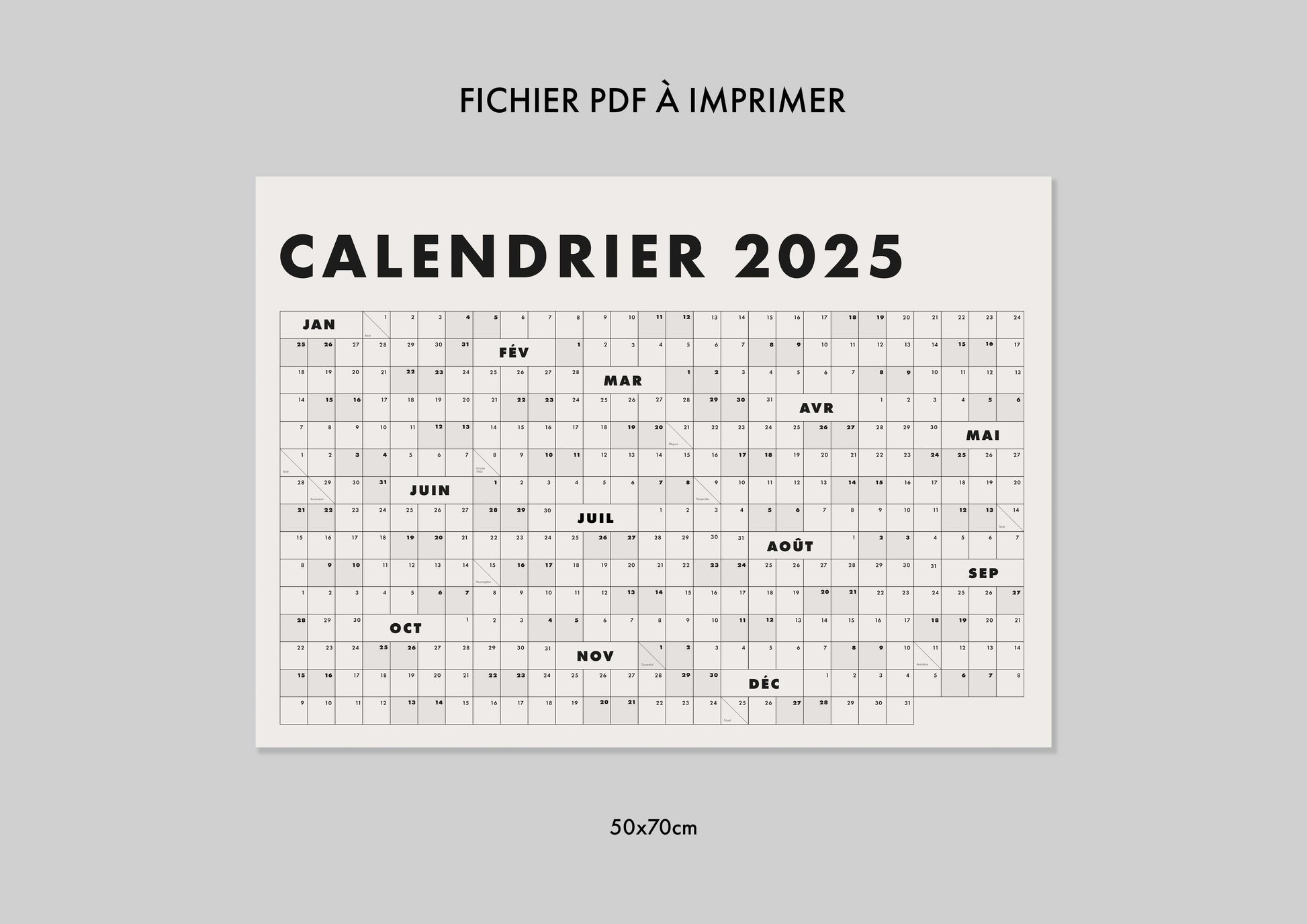 Calendrier mural 2025 50x70cm - Fichier téléchargeable (PDF & Ai)