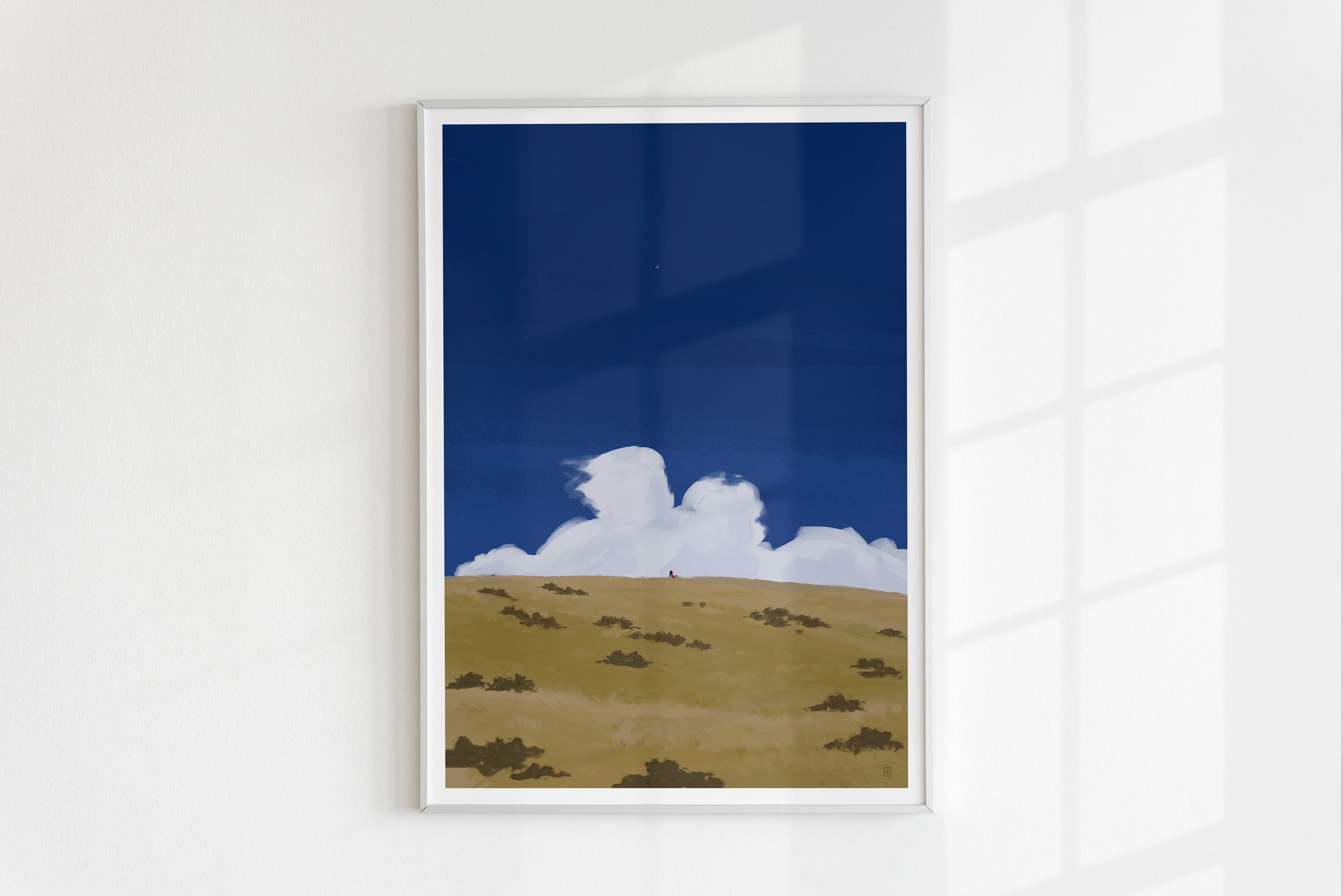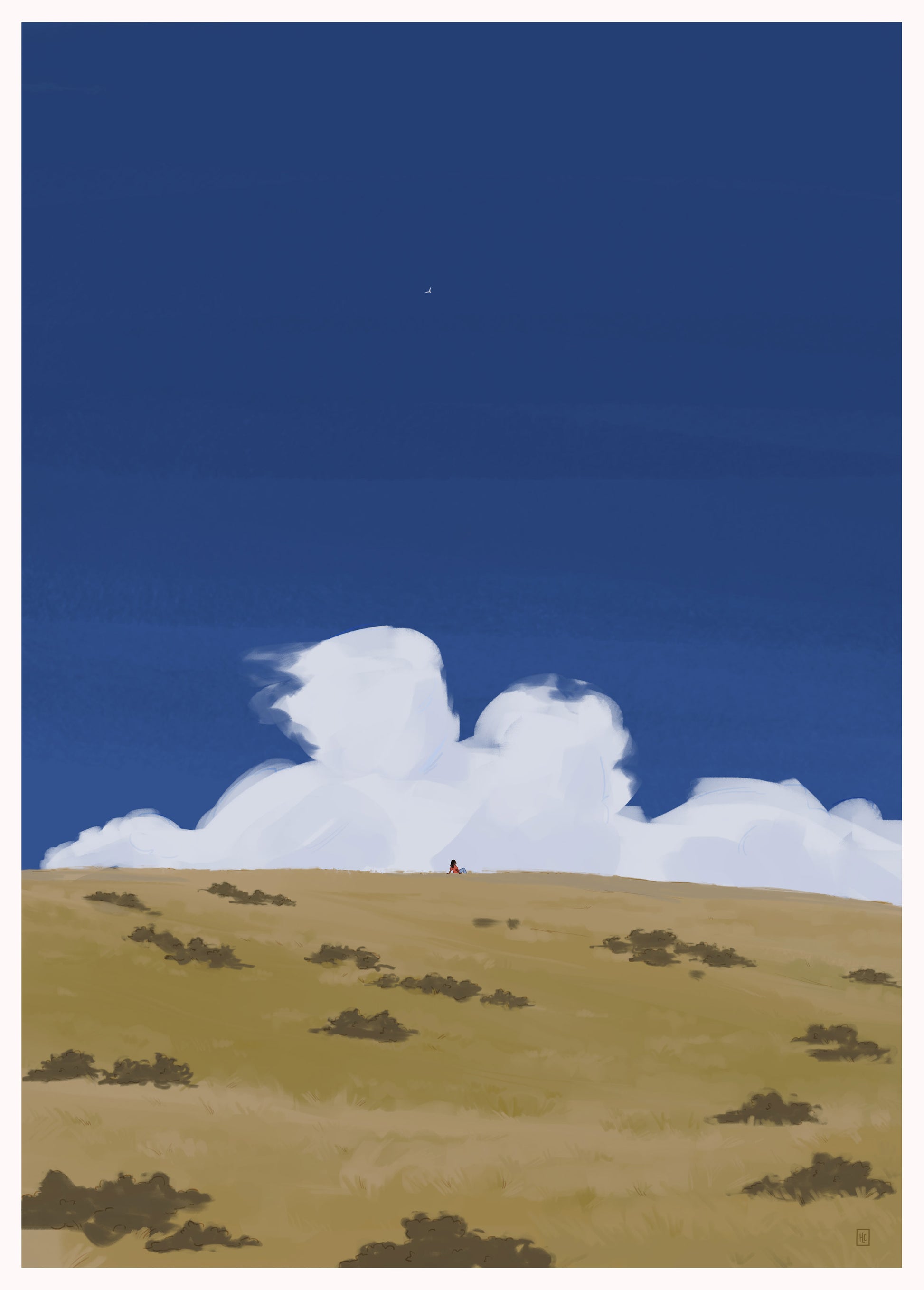 La plaine, une illustration inspirée par les ciels chargés en nuages qui me donnent toujours une envie irrépressible de m'approcher, d'aller voir le spectacle dans le ciel.